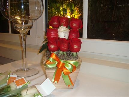 Tenemos rosas individuales para colocar en los escritorios, tambien corsages (brazos) ó boutonnieres (colocados en los sacos o blazzers) Arreglos para recepciones y centros de mesas para almuerzos ejecutivos.